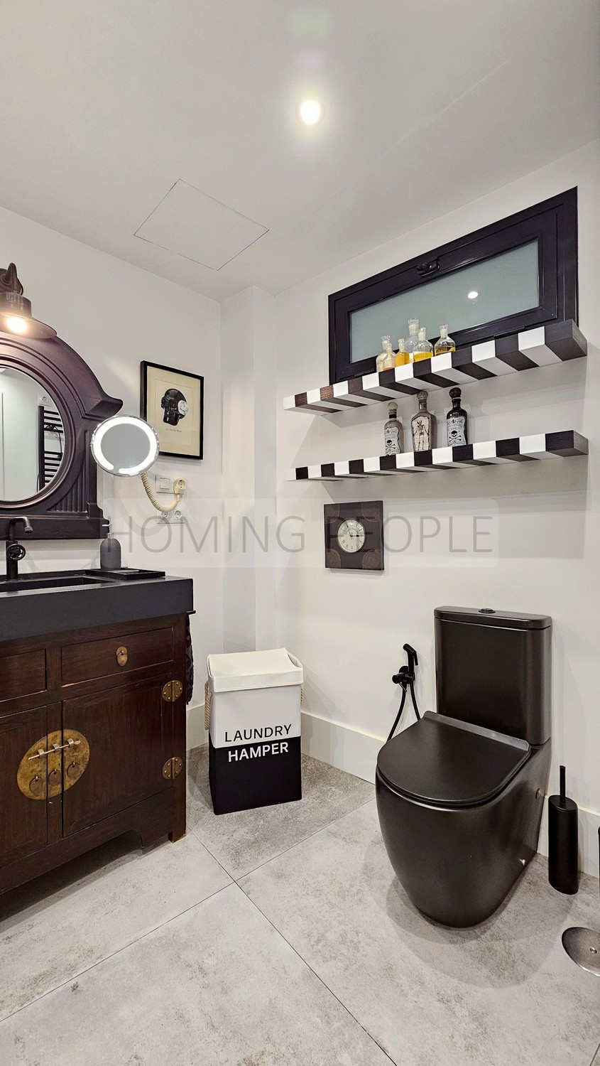 HABITABILIDAD Y EQUIPAMIENTO. La vivienda se encuentra en óptimas condiciones de habitabilidad y se entrega totalmente equipada, amueblada y decorada como en las fotografías, pudiéndose retirar algún elemento decorativo. Cocina de diseño minimalista con campana extractora de encimera, gran capacidad de almacenamiento y electrodomésticos de alta gama Whirlpool. Sanitarios de diseño, decoración de anticuario, dos grandes televisores, etc. Cerramientos de Climalit, aire acondicionado y bomba de calor de tipo industrial. Sistema de alarma.