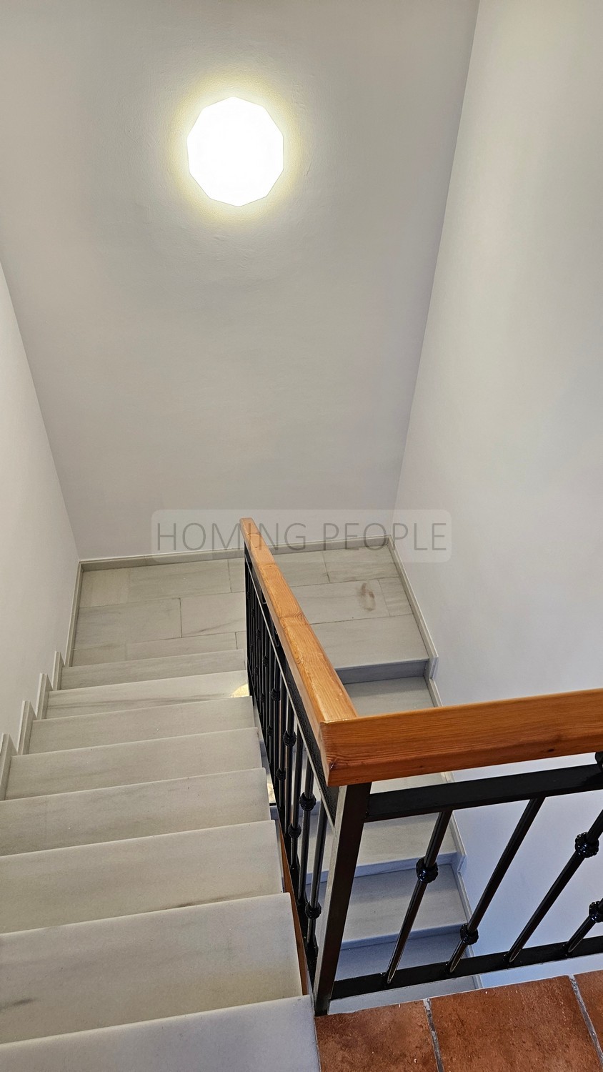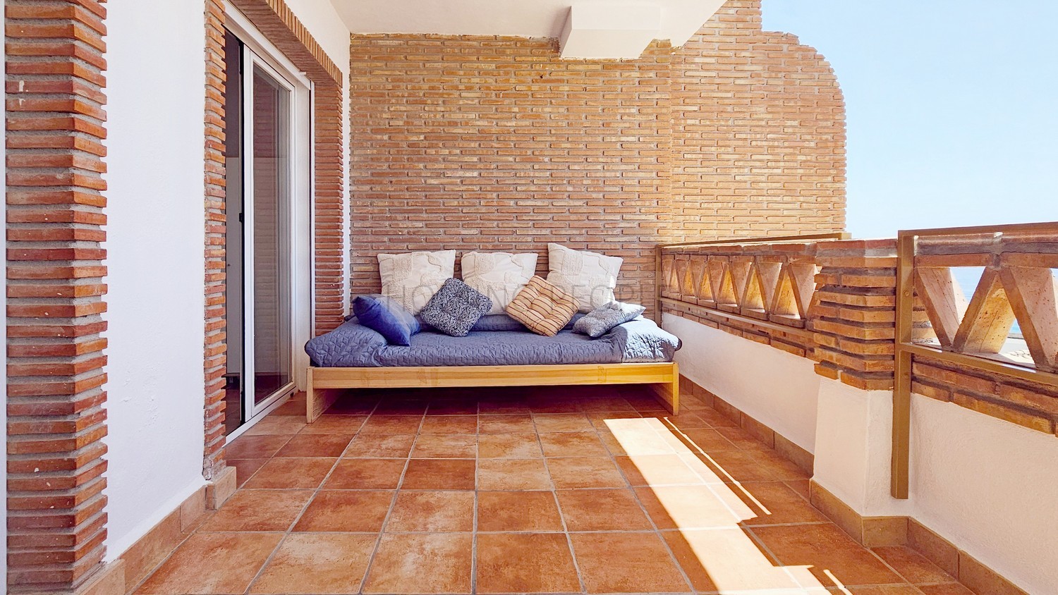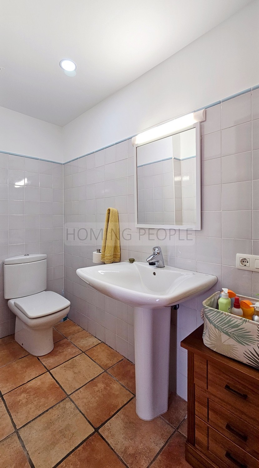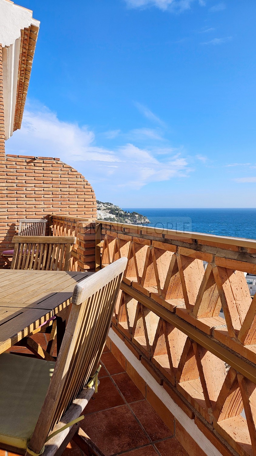 Maison en mitoyenneté, orientée sud-ouest avec garage privé et deux grandes terrasses, située à deux minutes en voiture du centre et de la plage.