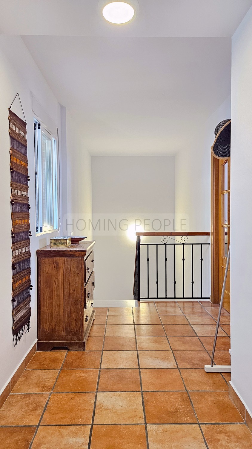 INTERIEUR. ETAGE PRINCIPAL : Hall d'entrée spacieux, WC, grand salon-salle à manger avec cuisine ouverte équipée avec bar et trois porte-fenêtres menant à la terrasse principale. ETAGE INFÉRIEUR : Trois chambres doubles et deux salles de bains, dont une en-suite. Les deux chambres d'amis ont accès à une magnifique terrasse couverte.