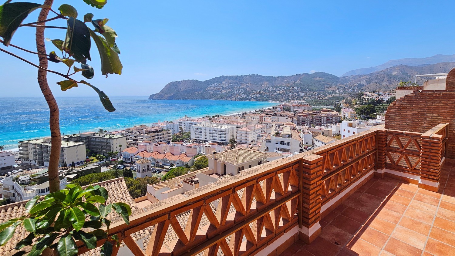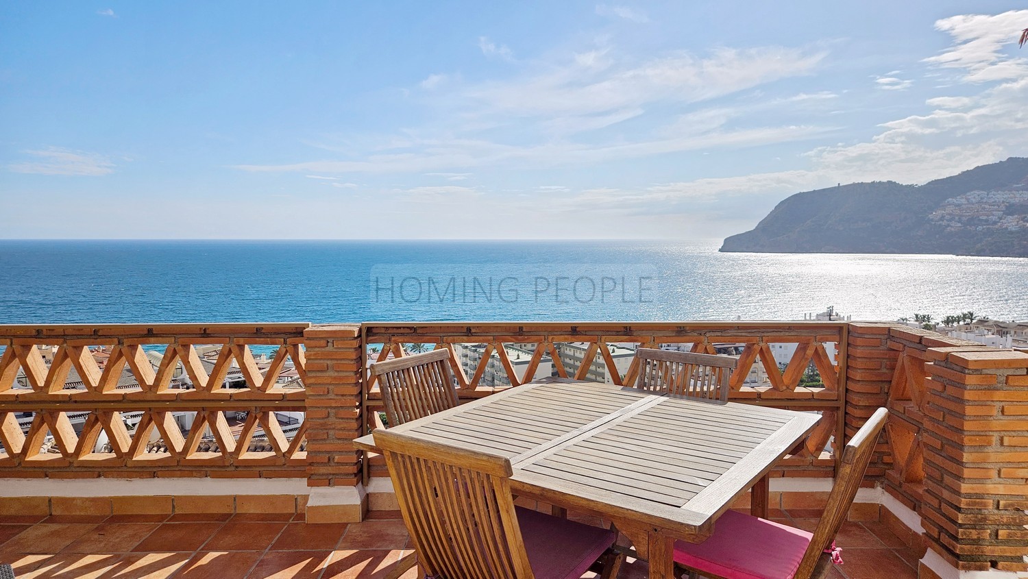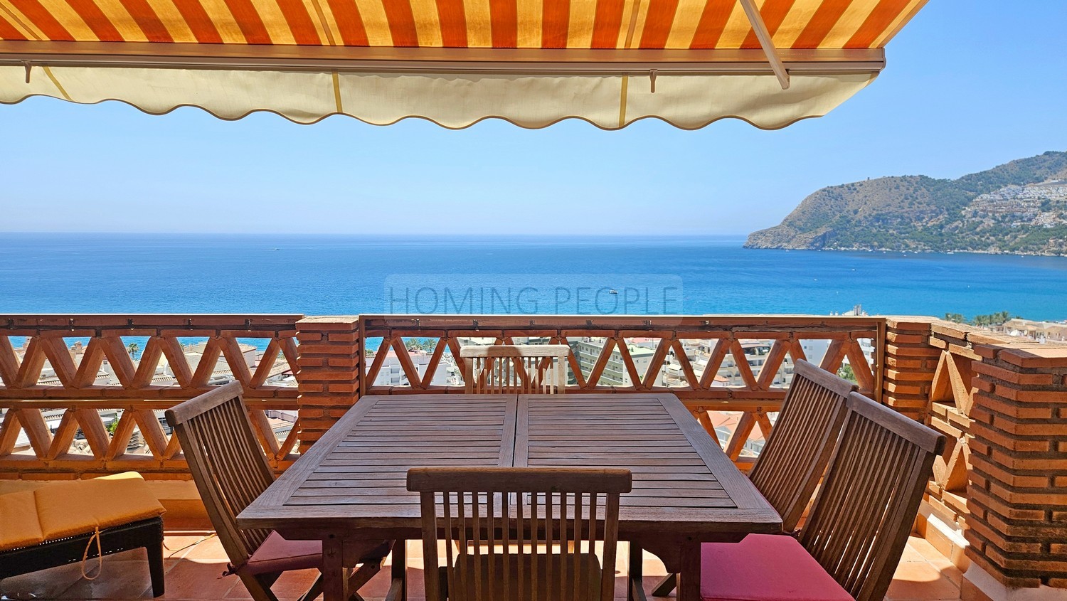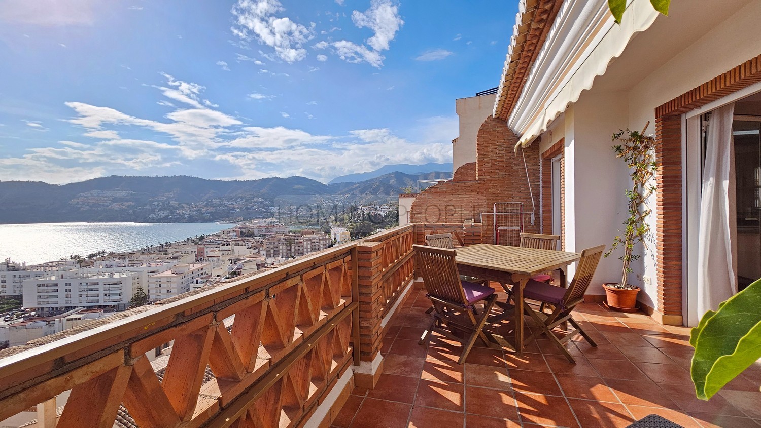 EXTERIEUR. Terrasse arrière /parking, garage privé, terrasse principale avec auvents et vues panoramiques sur la baie, et une terrasse inférieure couverte avec espace chill-out et de superbes vues sur la ville et la mer.